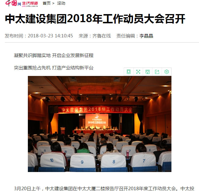 中国网报道了“中太建设集团2018年工作动员大会召开”